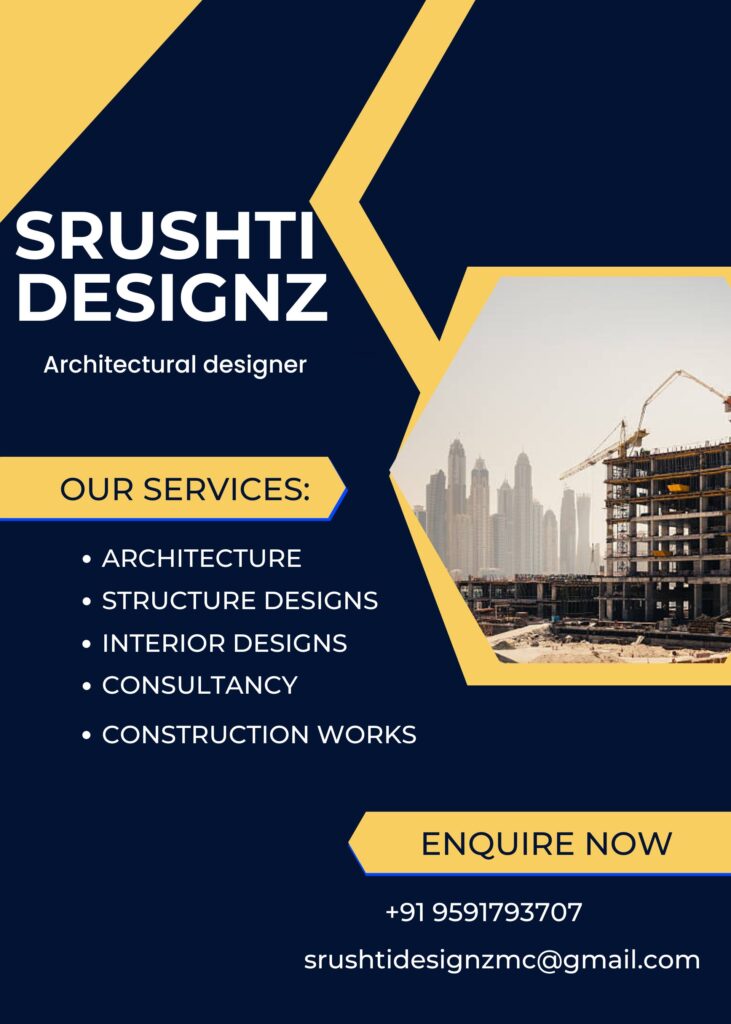 SRUSHTI DESIGNZ specializes in architecture, structural design, interior design, consultancy, and construction works. We provide comprehensive solutions for residential, commercial, and institutional projects.